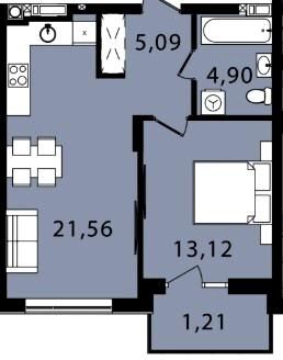 Однокомнатная квартира 45.88 м2