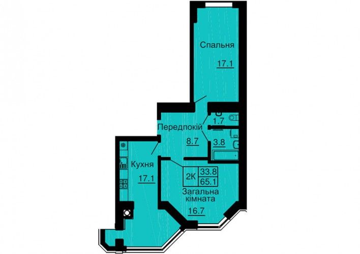 Двухкомнатная квартира 65.1 м2