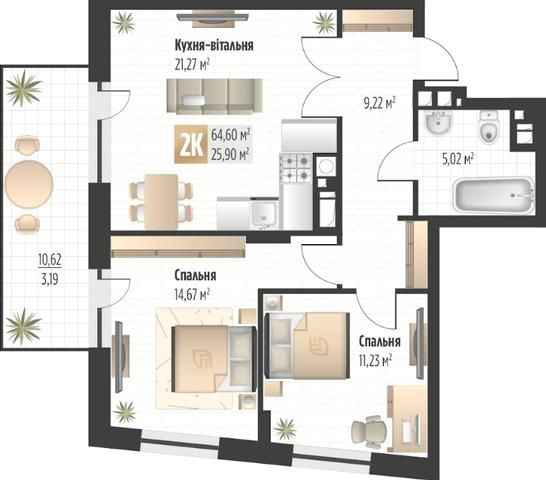 (от 58 184 грн/м2)