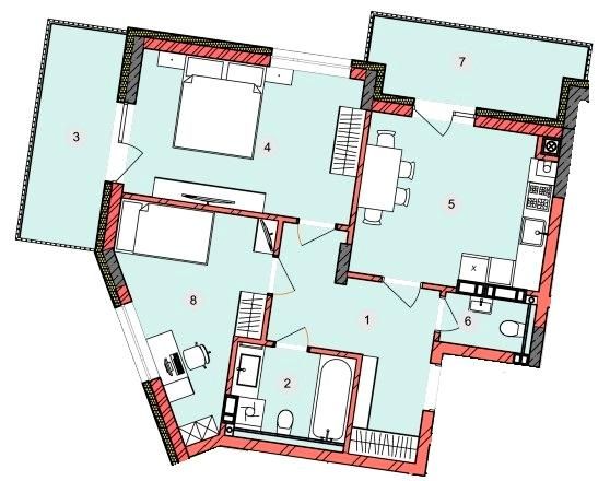 Двухкомнатная квартира 66.52 м2