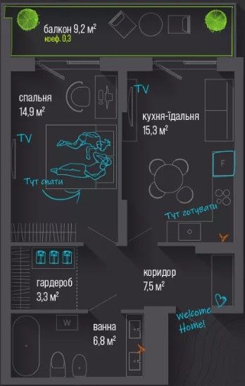 Однокімнатна квартира 51 м2