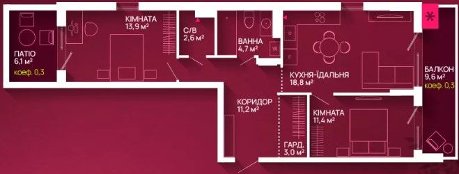 Двокімнатна квартира 70 м2