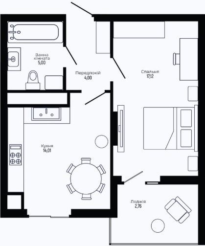 Однокімнатна квартира 42.89 м2